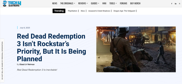 不过,这名匿名员工还透露,虽然公司的主要重点是 GTA 6,但《荒野大镖客3》的计划也在进行中。因此我们可以大胆地猜测《荒野大镖客3》正处于开发初期阶段。一旦备受期待的 GTA 6推出,开发重点就可能会转向它。